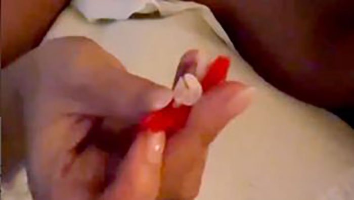 In the video, the mother-of-two proceeded to show her tooth wedged in the candy.