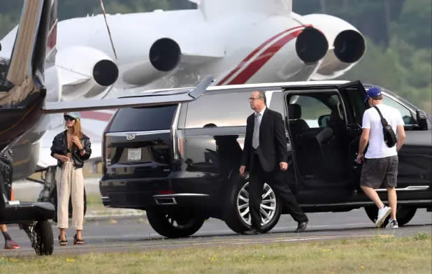 His companion, on the other hand, showcased her own fashion flair. She wore a bralette top paired with a leather bomber jacket, complemented by beige slouchy pants and heels. To maintain anonymity, she concealed her face with a hat and sunglasses.