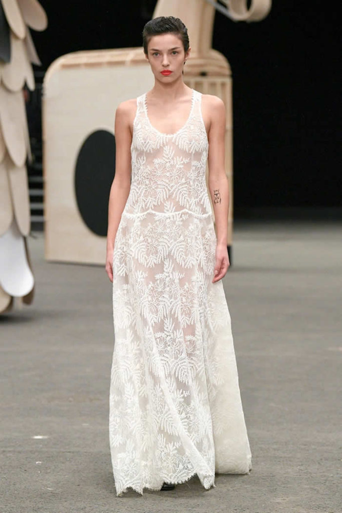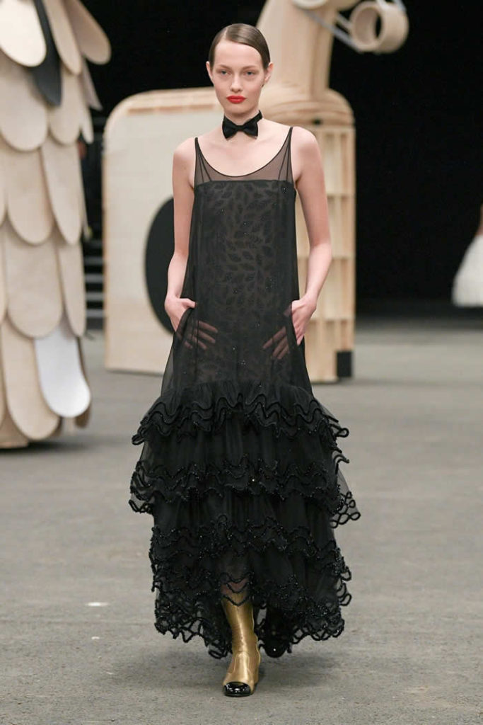 Asked afterward if she’d been thinking 1930s with these languid dresses, Viard looked as if vintage Chanel collections hadn’t crossed her mind. “No,” she shrugged. “That silhouette might make you think it, but no.”