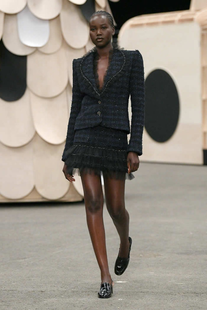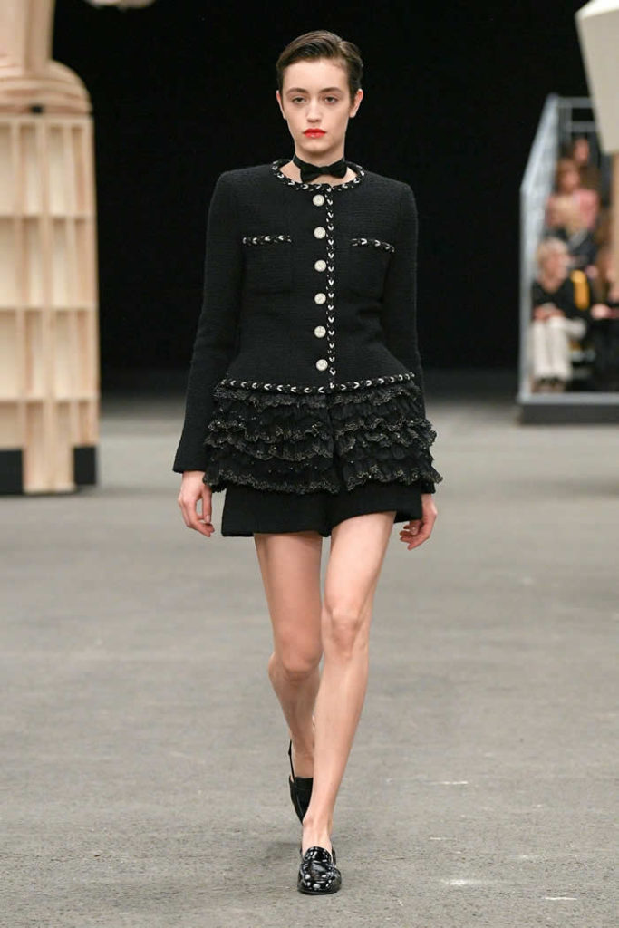 Still, it’s not in Viard’s nature as a creative director to push a concept over clothes. Instead, here was a collection of haute couture that felt youthfully relatable. The spectacle of her march of the majorettes simply became a device for freshening up the template of Chanel day suits, led out by a charming military-jacketed number in white.