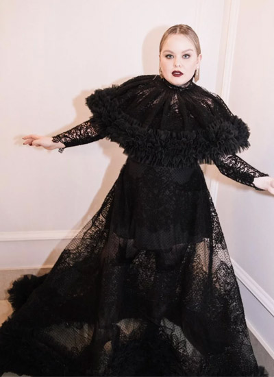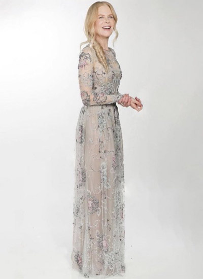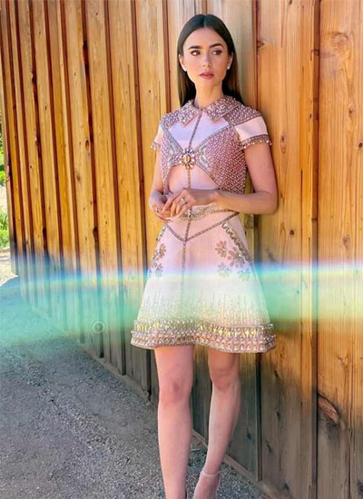 Lily Collins in Georges Hobeika Couture and Casadei shoes