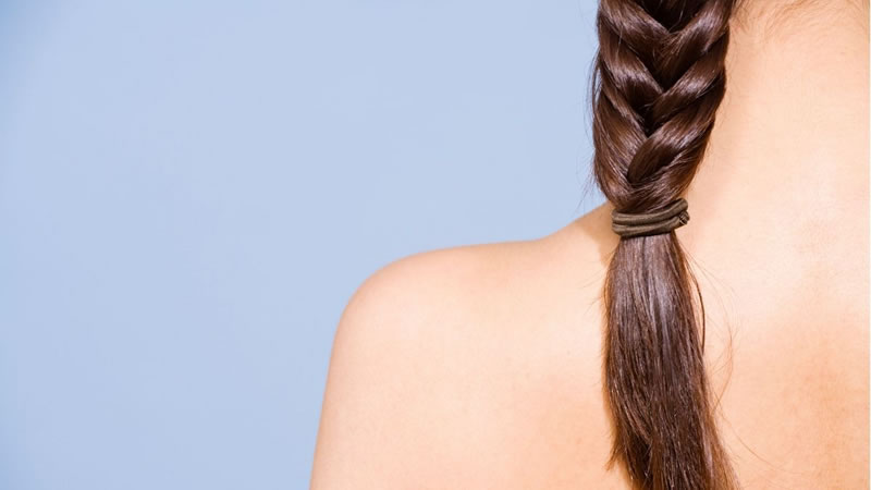 Braid each section in a classic three-strand braid and secure with a clear elastic.