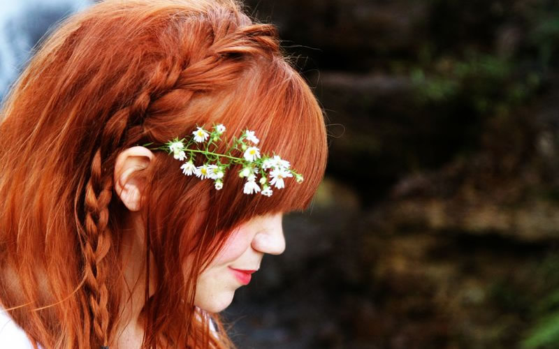 Here’s a brand new, extra magical hair how-to by Katie of Skunkboy. 1.Start with a dramatic side part. 2. Separate a small section of hair on the side. This will be the beginning of your side braid. 3.Taking that section, separate it into two smaller sections. 4.Using a fishtail braid method, begin braiding. 5. Continue the french braid until you reach behind the ear. Then finish your braid all the way down using the regular fishtail method. 6. Gather hair into a side ponytail and add accessories like headbands, barrettes or flowers!