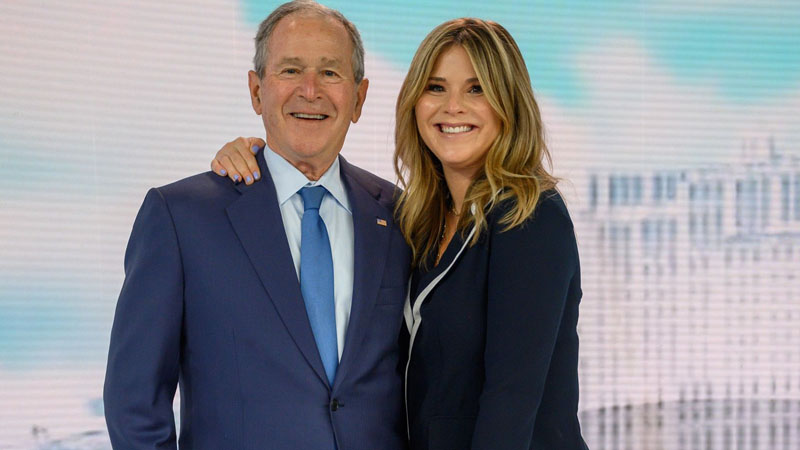 On April 20, George and Laura visited Today to catch up and talk about his book. (He showed off his art skills then too in a game of “Presidential Paintionary.”) “When he was here, he told Hoda that I hate the painting, and I don’t hate it,” Jenna said. Hoda chimed in: “But he did ask me if I wanted it because you didn’t like it.”