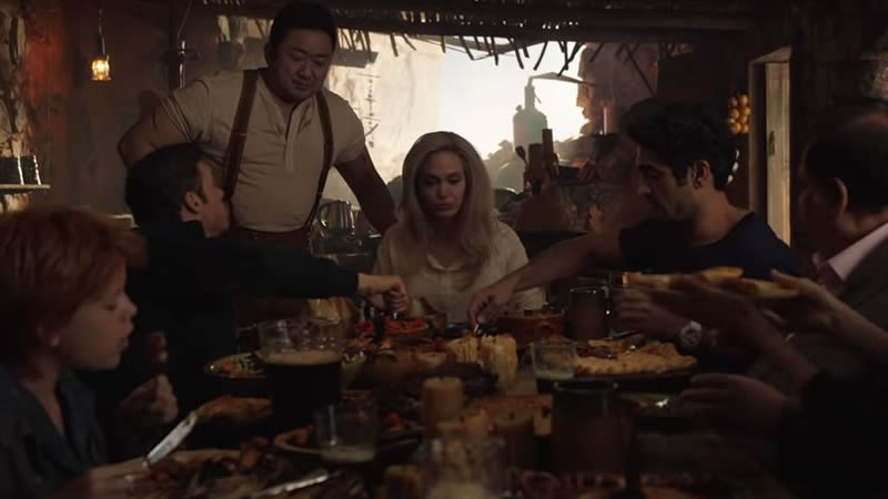 Angelina plays Thena, one of the Eternals of the title. They are immortal creatures who secretly live on the Earth with us mortals.