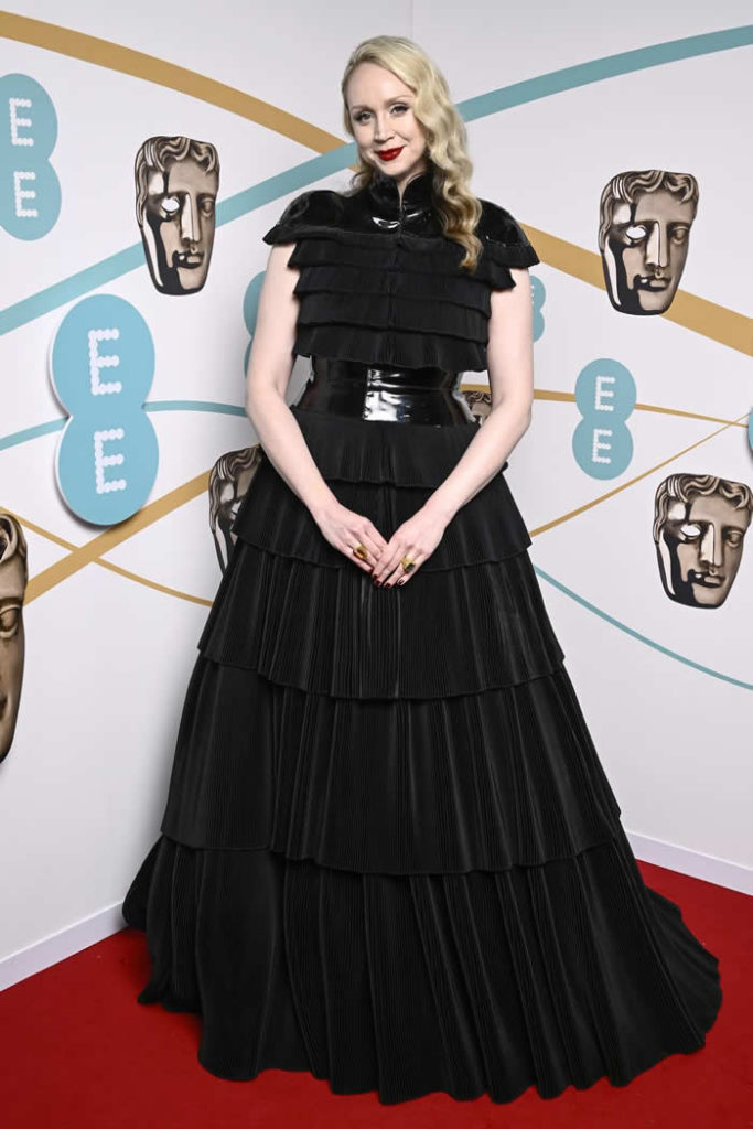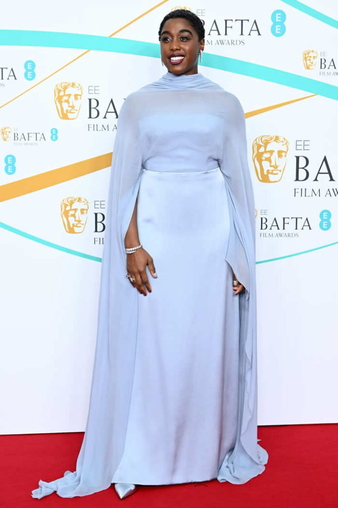 Tonight’s 76th annual BAFTAs are hosted by actor Richard E. Grant at London’s Royal Festival Hall for the very first time. The British film ceremony honors the year’s best performances on-screen and is an unmissable part of awards season. And as usual, the red carpet affair before the grand ceremony was just as much of a spectacle as the actual event. At the BAFTAs, A-listers decided to lean into modern glamour, favoring quirky accents that made an impact.