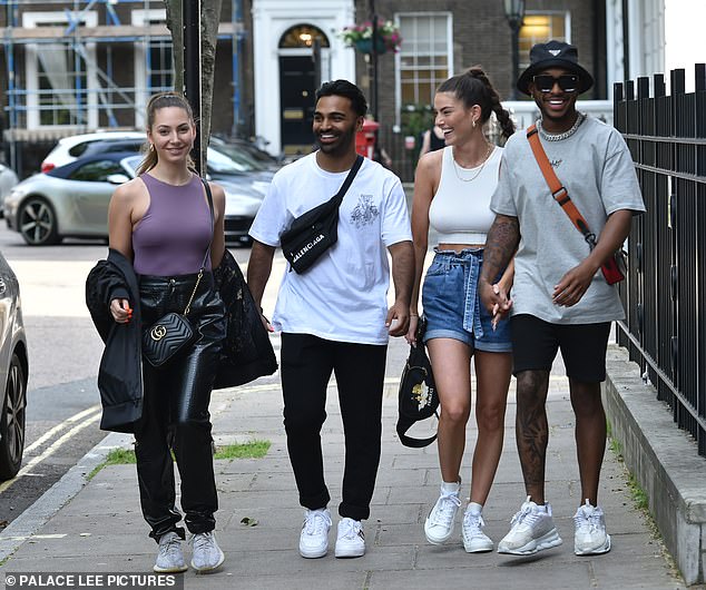The loved-up couple, aged 23 and 28, were also joined by former co-stars Nas Majeed and Eva Zapico as they caught up in the British capital.