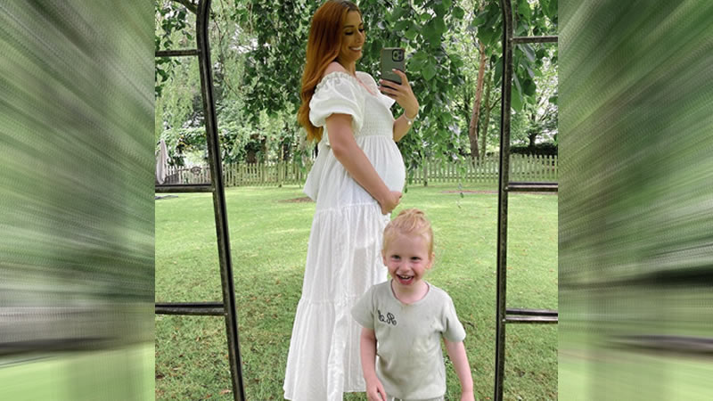 Stacey Solomon was glowing as she shared a stunning picture of herself at the beach as she cradled her blossoming baby bump in a stunning one-piece swimsuit