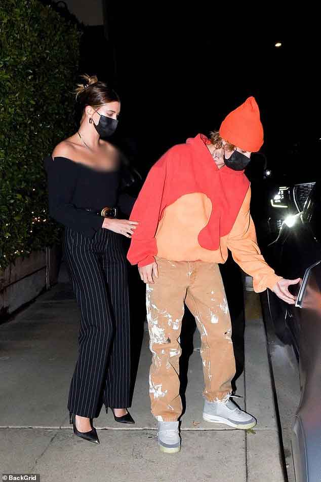 The ‘Yummy’ singer captured the attention of people as he opted for a comfortable sweatshirt while Hailey dazzled in an all-black ensemble.