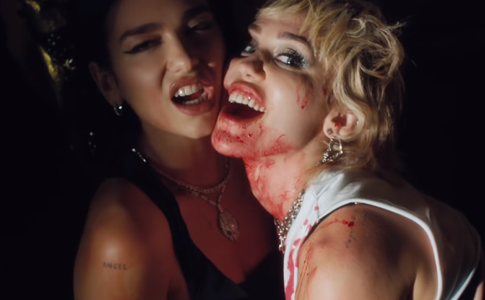 When the music video has begun it gives a Rocky Horror vibe. It features Miley singing with her signature smirk before getting behind the wheel of a tour bus with Dua Lipa. Both are fabricated and standing on the bus like an ’80s rock band