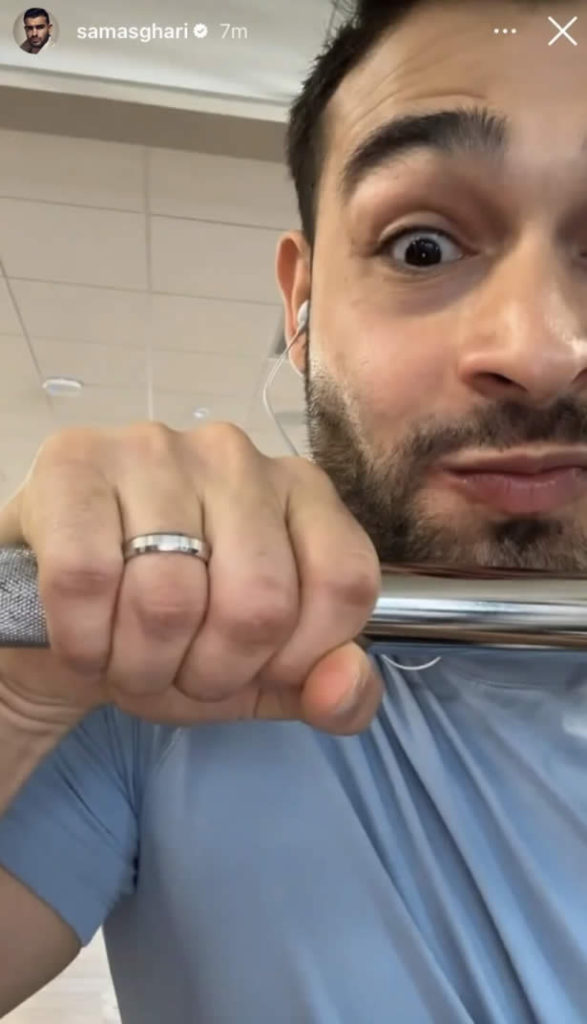 Sam has been posing on Instagram in ways that make it clear that his wedding band is being kept firmly on.