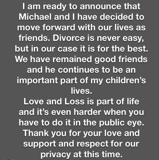In her Instagram statement, she wrote: “I am ready to announce that Michael and I have decided to move forward with our lives as friends.