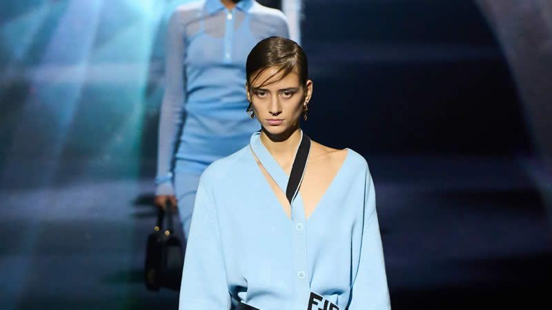 The third ingredient was inspired by Delfina Delettrez Fendi’s personal style, including her interesting combination of brown and pale blue, reflected in the multi-length pleated kilts and black satin suiting. The fourth and final element was the triple-yarned, ribbed knits drawn from Karl Lagerfeld’s fall 1996 collection for the house, contributing to the overall vision of a sophisticated Italian woman with global appeal.