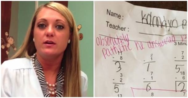 According to the details, 7 year-old Kamdyn Piland’s quiz had the words “absolutely pathetic” written across the top of his paper. Kamdyn attends Valley View Elementary School, and the notation on the quiz also noted the boy “answered 13 in 3 min! Sad.” A drawing of a sad face was next to the note.