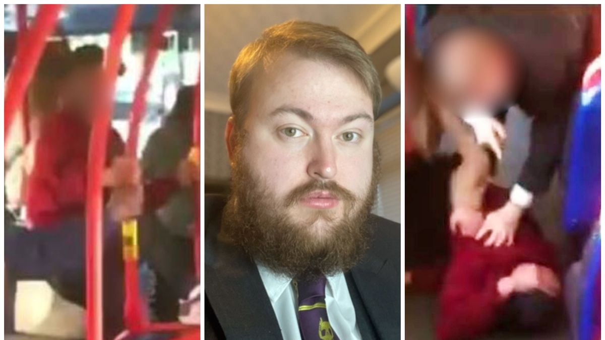 He was sitting on a bus when a couple allegedly began verbally abusing a mum without a face mask who was with her child, he claims.