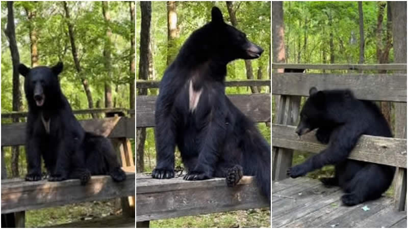 In late May, Susan had one of her closest encounters while sitting on her porch. A curious black bear climbed up to join her, sitting down right across from her, both remaining incredibly calm. It’s a scene that’s almost unbelievable.