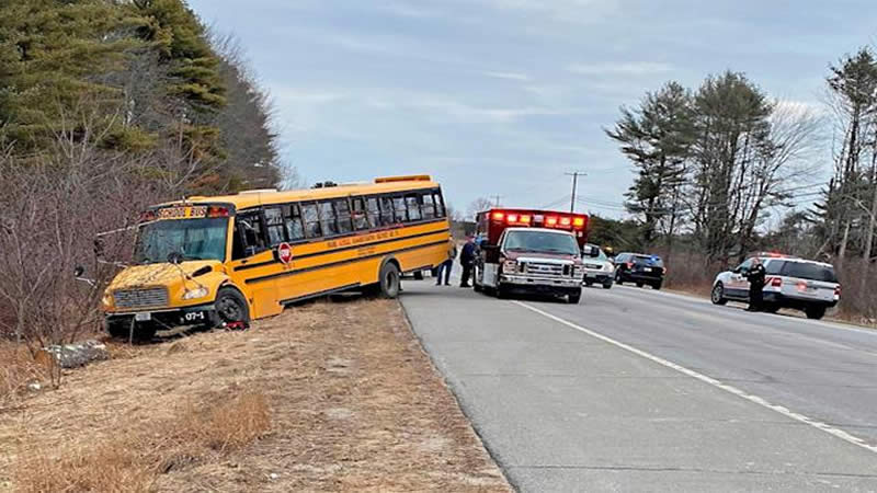 The bus driver reportedly lost control of the bus as it headed toward Mount Ararat Middle School and Mount Ararat High School on U.S. Route 201 in Topsham around 7:30 a.m., Topsham Police Chief Marc Hagan said.