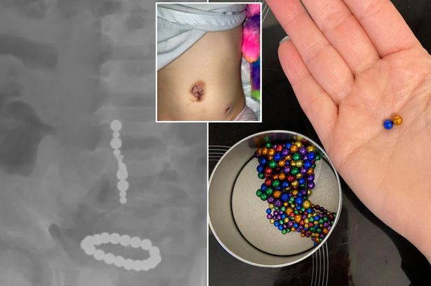 Suzanne Lawther, a consultant in paediatric surgery at the Royal Belfast Hospital for Sick Children, which has dealt with numerous similar cases, said: “They [the magnetic ball toys] are about 10 times stronger than traditional magnets and if the magnets end up on either side of a piece of the digestive tract, the magnetic force is so strong that it actually interferes with the blood supply.