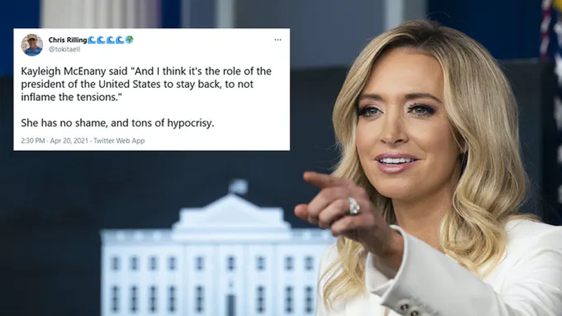 The fact that McEnany said that presidents should not “inflame the tensions” was too much for people online, who pointed to numerous instances where Trump did that basically every single day.