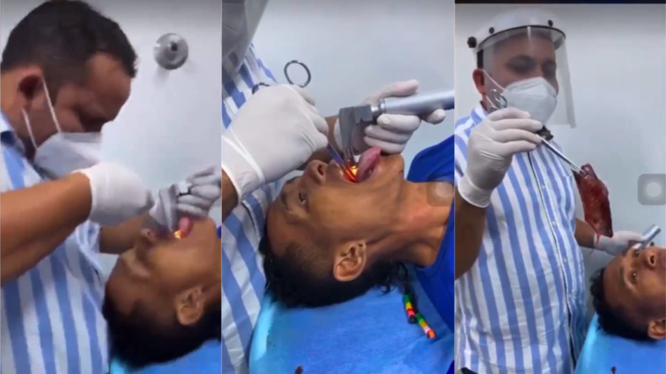 Grim video shows the quick medical procedure as the medical staff examines the foreign object with a pair of forceps.