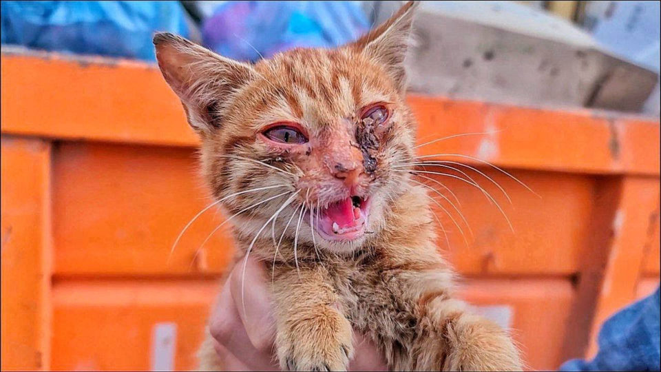Woman Heard Tiny Mews and Lifts Up Sick Cat That Should Be 3x The Size