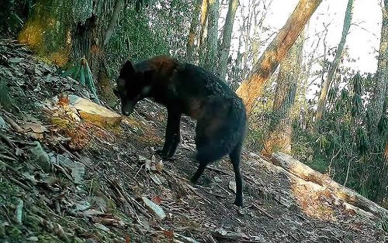 It was just like any other day. The family went out to check on their outdoor camera, and nothing seemed out of the ordinary. They transferred the footage to one of their computers, and began to review it. They were shocked to see a very distinct canine with a shimmering black coat of fur. the footage was posted online, and viewers brought the rarity of this amazing animal to their attention.