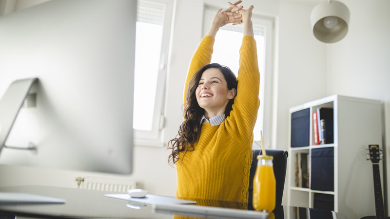 Throughout the day try to remind yourself to keep your shoulders down and relaxed, and focus on maintaining an upright spine with a slight arch in your lower back (try visualizing a string pulling up from the top of your head). You can also make use of gentle stretching exercises in-between activities – just make sure you don’t overdo it or stretch if something doesn’t feel right. Finally, find the right chair for your home office setup and make sure it’s properly adjusted for maximum comfort.