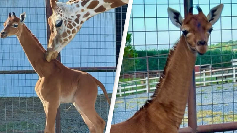 A remarkable event has unfolded at a private zoo in Tennessee, where a distinctive baby giraffe has recently been born, drawing worldwide fascination. The extraordinary feature that sets this giraffe apart is its solid brown color, devoid of the typical camouflage patches seen on most giraffes.