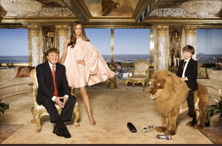 Casler’s tweet captioned an old, well-known photo of the Trump family surrounded in gold crap at their home: