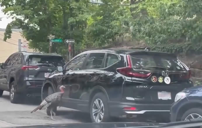 A Boston woman’s car was significantly damaged in a wild turkey attack, which was caught on video by a neighbor and lasted over 15 minutes. Alicia Mastroianni, the car owner, discovered the damage on July 15 when she left her Brighton home to go to work at Boston Children’s Hospital. Her vehicle was covered in scratches, and a note explaining the incident was left on her windshield.