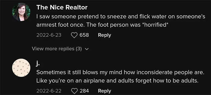 According to the comments left by other TikTokers who saw the video, this has unfortunately happened to other people who were sitting in front of those trying to rest their feet on a long flight.