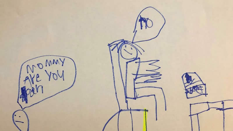 It was a drawing of a parent at work and a child looking on. The child says, “Mommy are you done?” and the mother replies, “No.” She then posted the picture to LinkedIn.